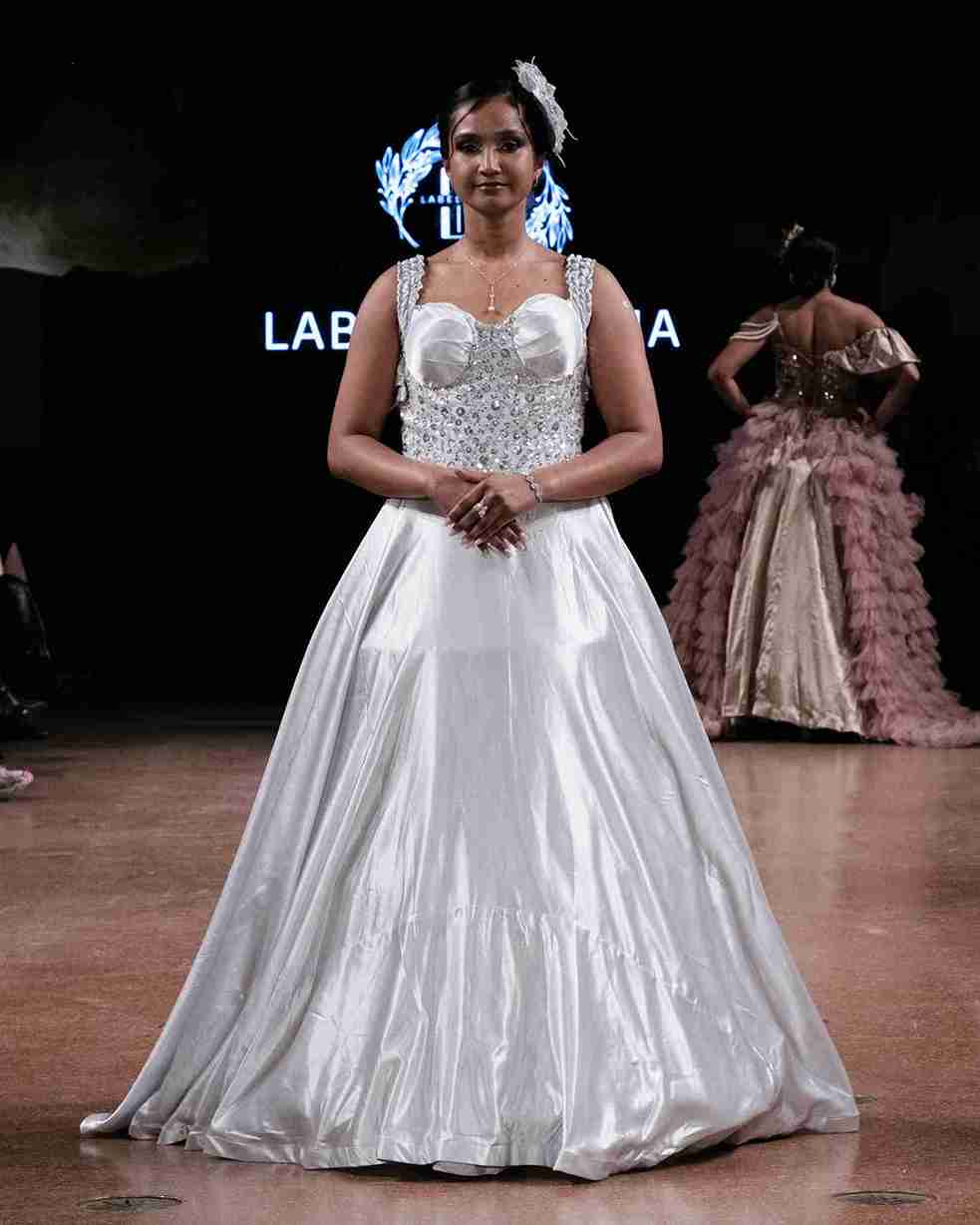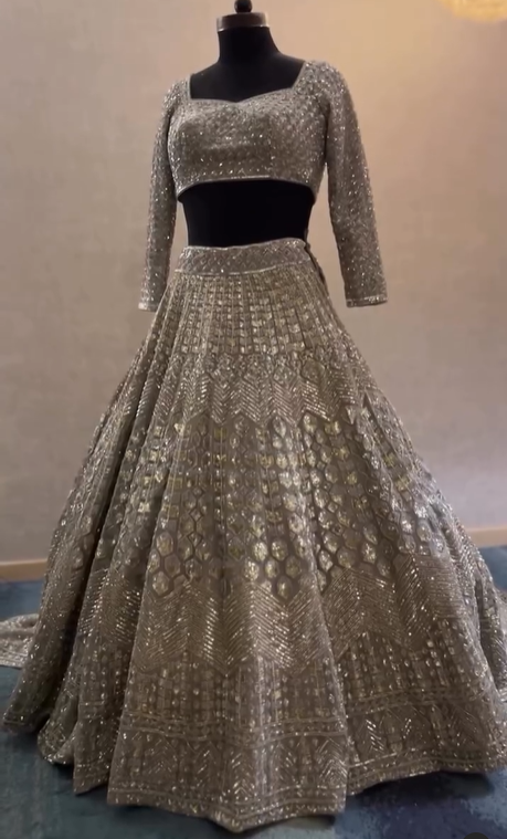 White embroidered Mirror Lehenga Beaded with hand embroidery on Chikankari Lakhnavi Lehenga