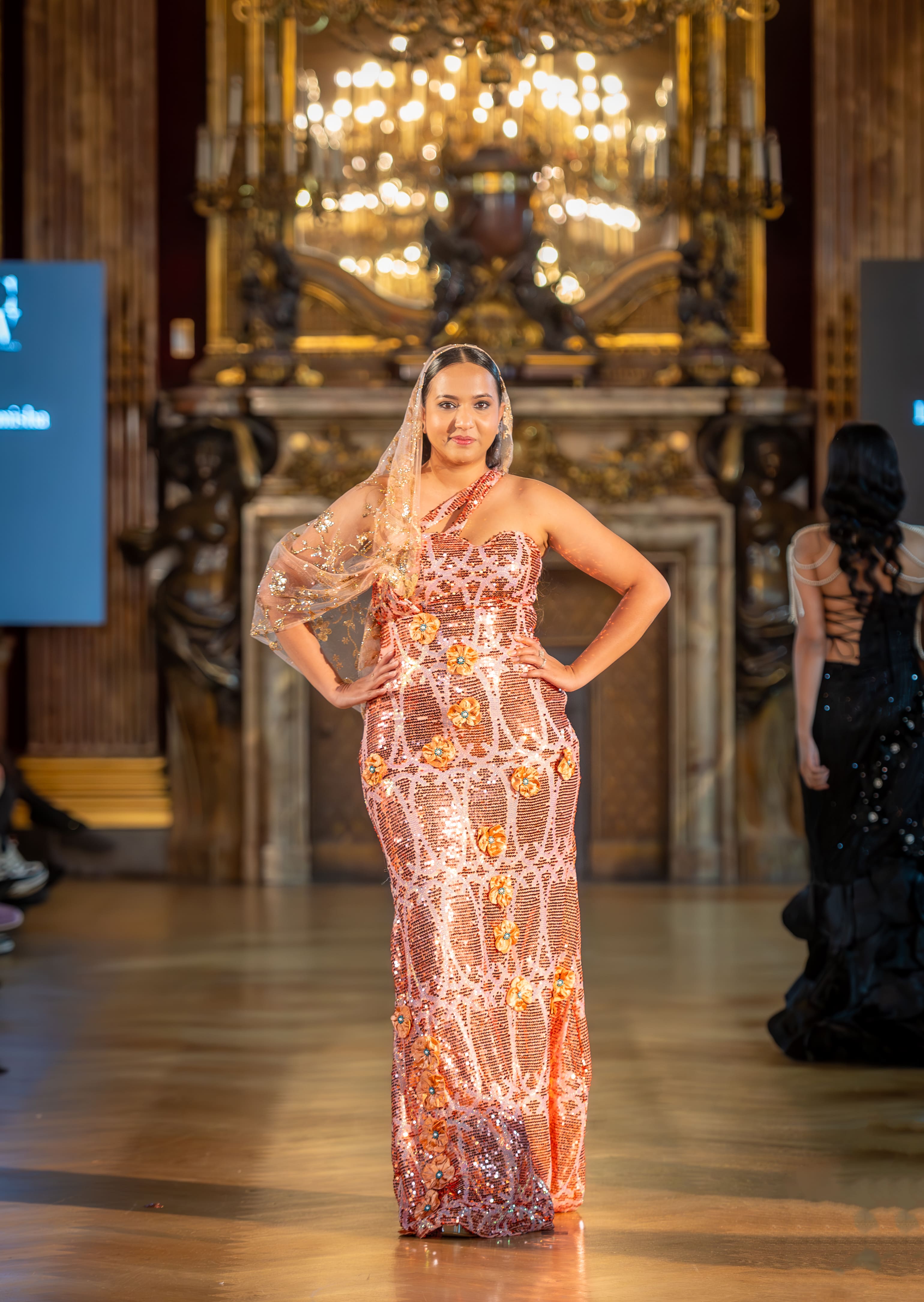 Royal Sequin Gown with Headcover