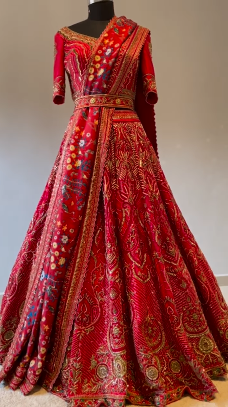 White embroidered Mirror Lehenga Beaded with hand embroidery on Chikankari Lakhnavi Lehenga